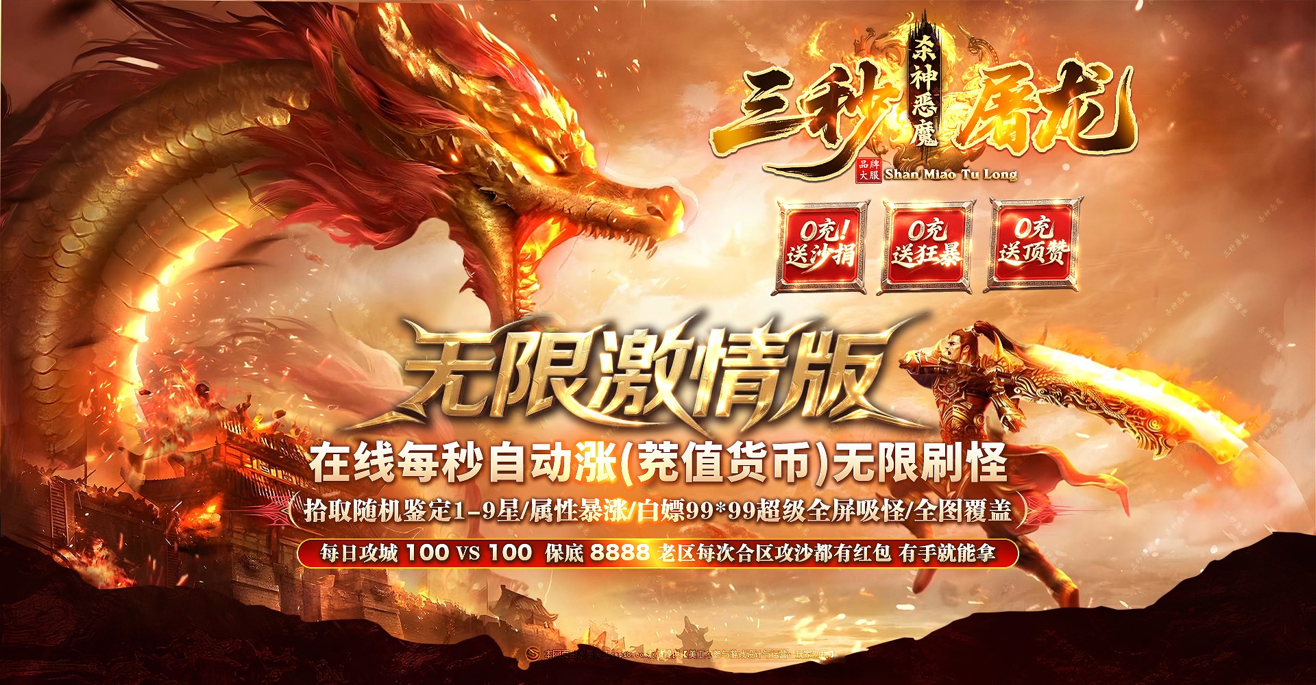 【三秒屠龙】★挂机.拾取.回收,全部免费,所有装备全部爆出,所有地图免费进,白嫖轻松毕业★